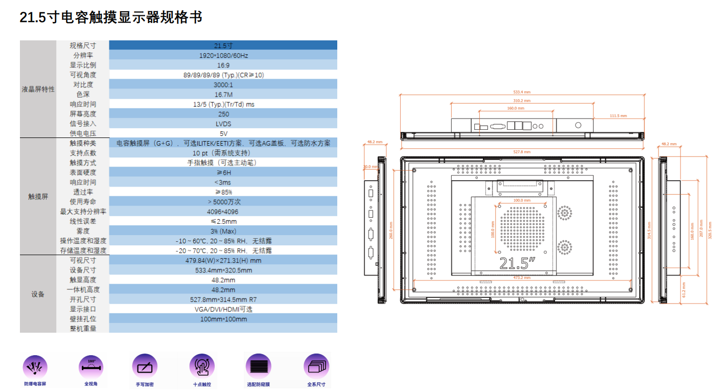 21.5寸內嵌式觸摸顯示器